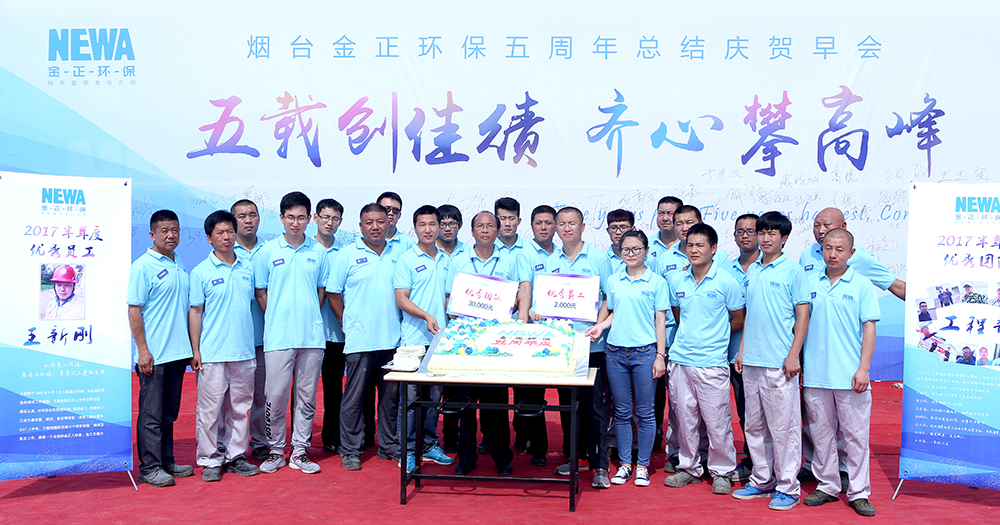 2017年7月5日,是金正環保五周歲的生日,金正環保全體員工舉辦了簡單而隆重的五周年總結慶賀早會。