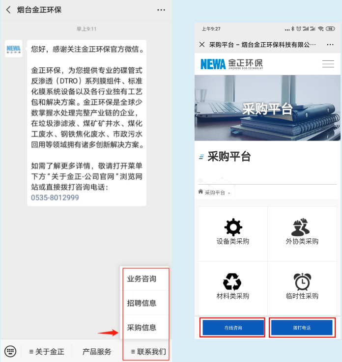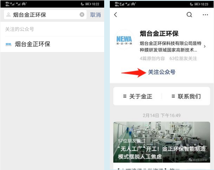 打開手機微信,添加公眾號“煙臺金正環(huán)保”;