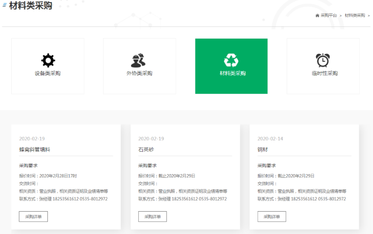 進入采購平臺頁面,點擊符合自己的采購類別,查看采購基礎(chǔ)信息;