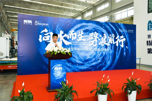活動現(xiàn)場,公司總經(jīng)理首先向八年來為公司發(fā)展而努力付出的人致謝。他表示,人生總要做點事,一生只做一件事,金正環(huán)保就是要成為中國乃至世界污水回用領(lǐng)軍企業(yè)。未來,相信在全體金正人的共同努力下,金正環(huán)保必將迎來更加輝煌的明天。