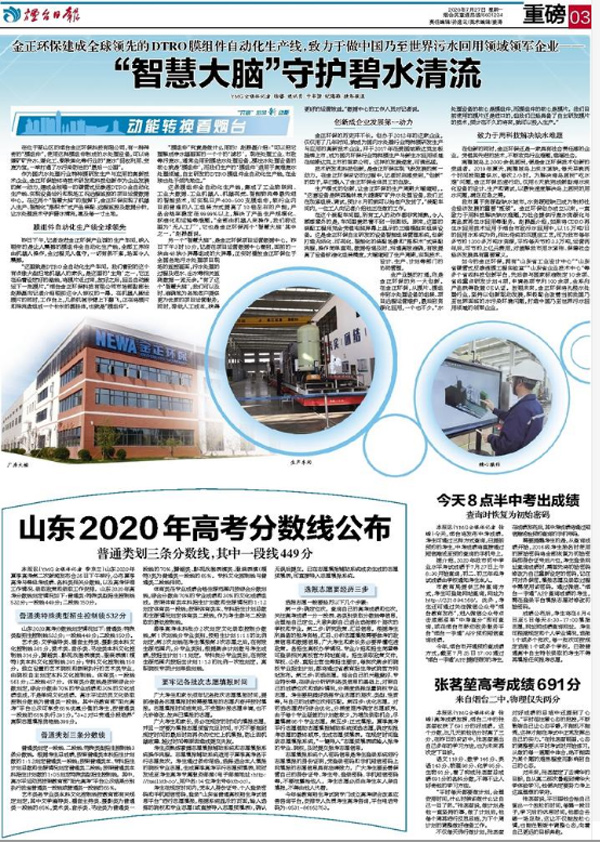 《煙臺日報》頭條丨金正環保“智慧大腦”守護碧水清流
