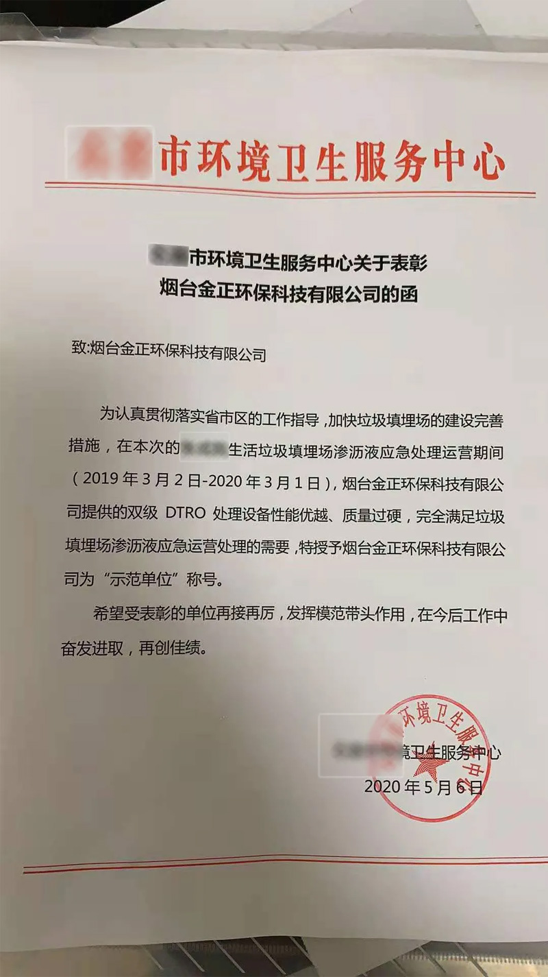 這些榮譽(yù),滿載著的是客戶對(duì)金正環(huán)保DTRO產(chǎn)品優(yōu)越的性能和過(guò)硬質(zhì)量的肯定,高效率的團(tuán)隊(duì)與優(yōu)質(zhì)的售后服務(wù)理念的認(rèn)可,也是對(duì)我們的激勵(lì)和鞭策,更是我們一直以來(lái)不斷前進(jìn)的動(dòng)力源泉。