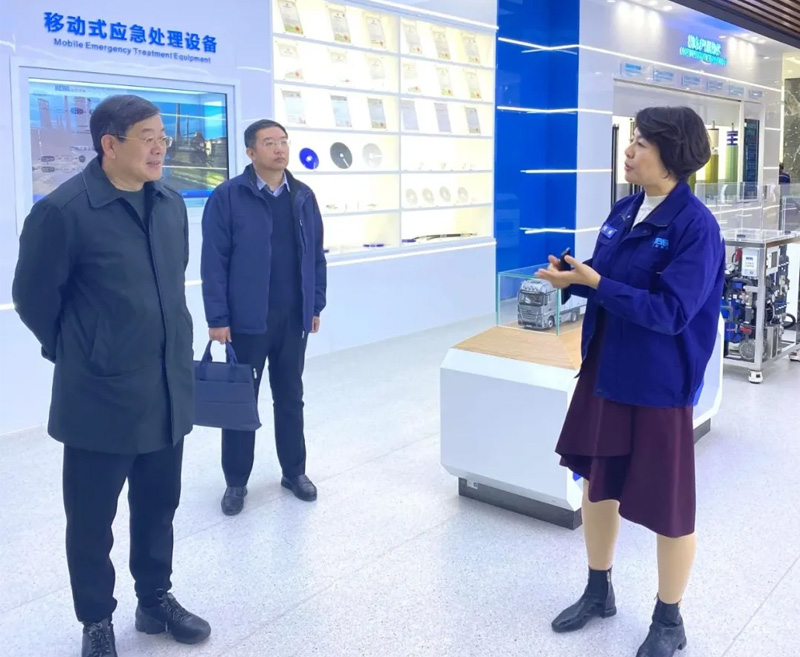 孫樹福局長一行先后參觀了公司展廳、全自動化生產(chǎn)線、設(shè)備裝配車間和大數(shù)據(jù)中心等,隨后召開座談會,詳細了解金正環(huán)保的核心產(chǎn)品、核心技術(shù)以及生產(chǎn)過程中員工安全防護、安全培訓(xùn)等情況,并重點詢問了公司在應(yīng)急處理設(shè)備上取得的新成果。
