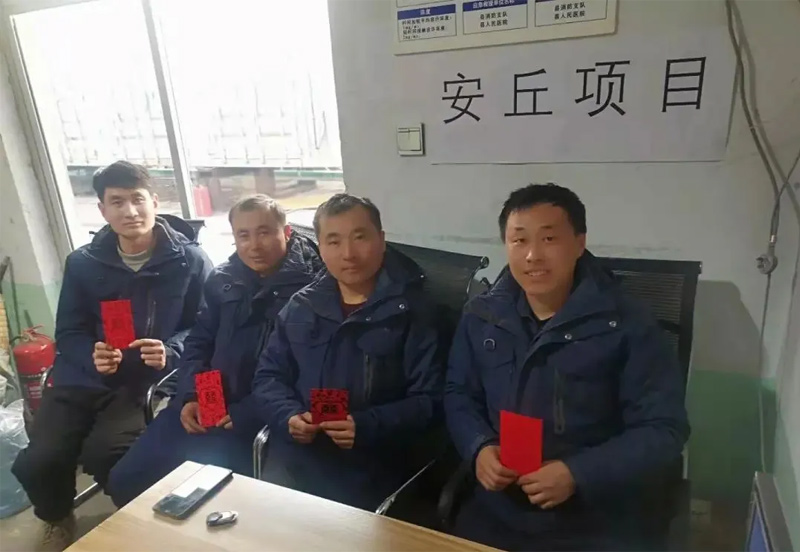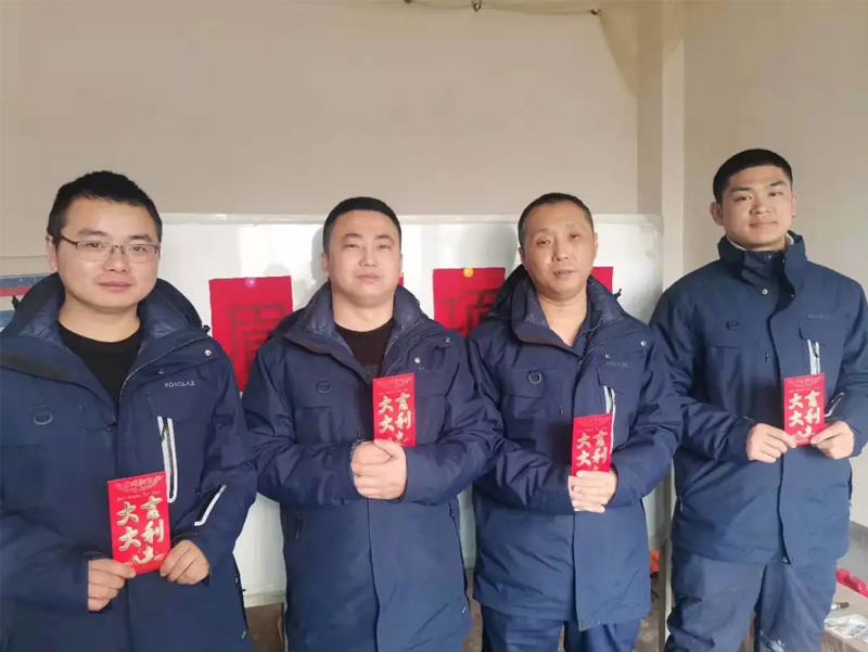 除夕,萬家團圓之際,金正環(huán)保各部門、各項目現(xiàn)場依然有人奮戰(zhàn)在工作崗位上,放棄了與家人團聚的歡聚機會,默默的奉獻服務(wù),保證工作順利有序開展,公司執(zhí)行副總裁傅進玉、運營副總裁馬世虎、管理副總裁于萍等領(lǐng)導(dǎo)帶隊,向堅守在項目現(xiàn)場和公司各崗位值班人員送去了節(jié)日問候和紅包。