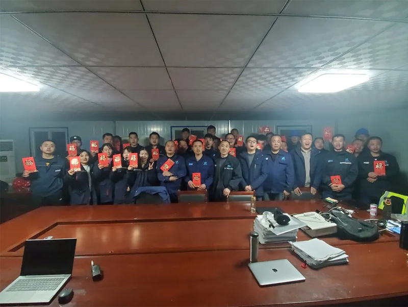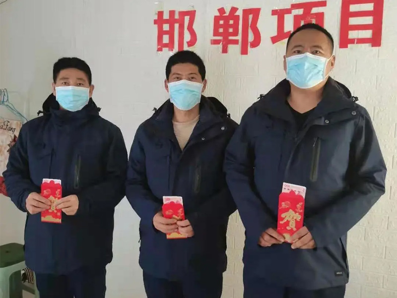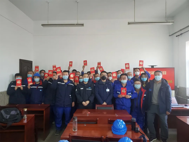 “堅守在一線的你們辛苦了!祝大家新春快樂!”2月8日,公司101會議室溫暖如春,一句句暖心的問候和祝福,穿越千山萬水,隔空傳遞著。受疫情影響,為減少人員流動,公司總裁李越彪先生和執(zhí)行副總裁傅進玉先生以視頻連線的方式對袁大灘、邯鄲、安丘、榆能化、眉山五個堅守項目現(xiàn)場的一線員工進行慰問。
