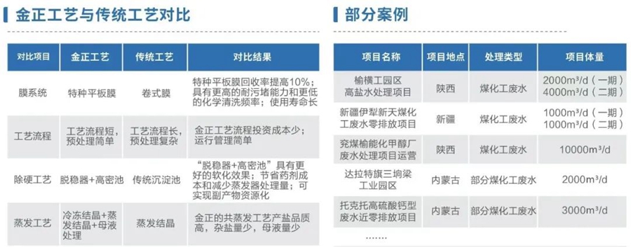 ▲金正環(huán)保煤化工廢水零排放工藝路線、優(yōu)勢