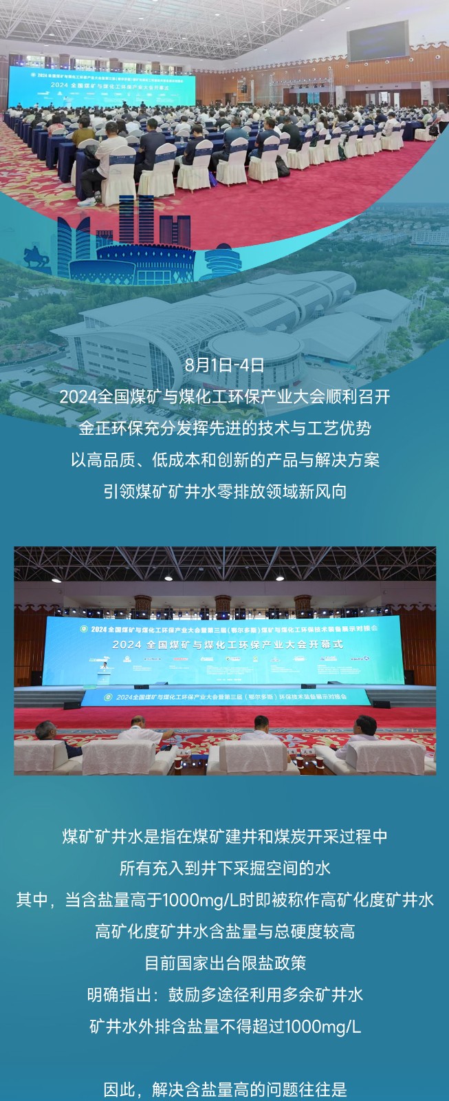 煙臺金正環保亮相2024全國煤礦與煤化工環保產業大會,分享礦井水零排放專利技術創新成果!