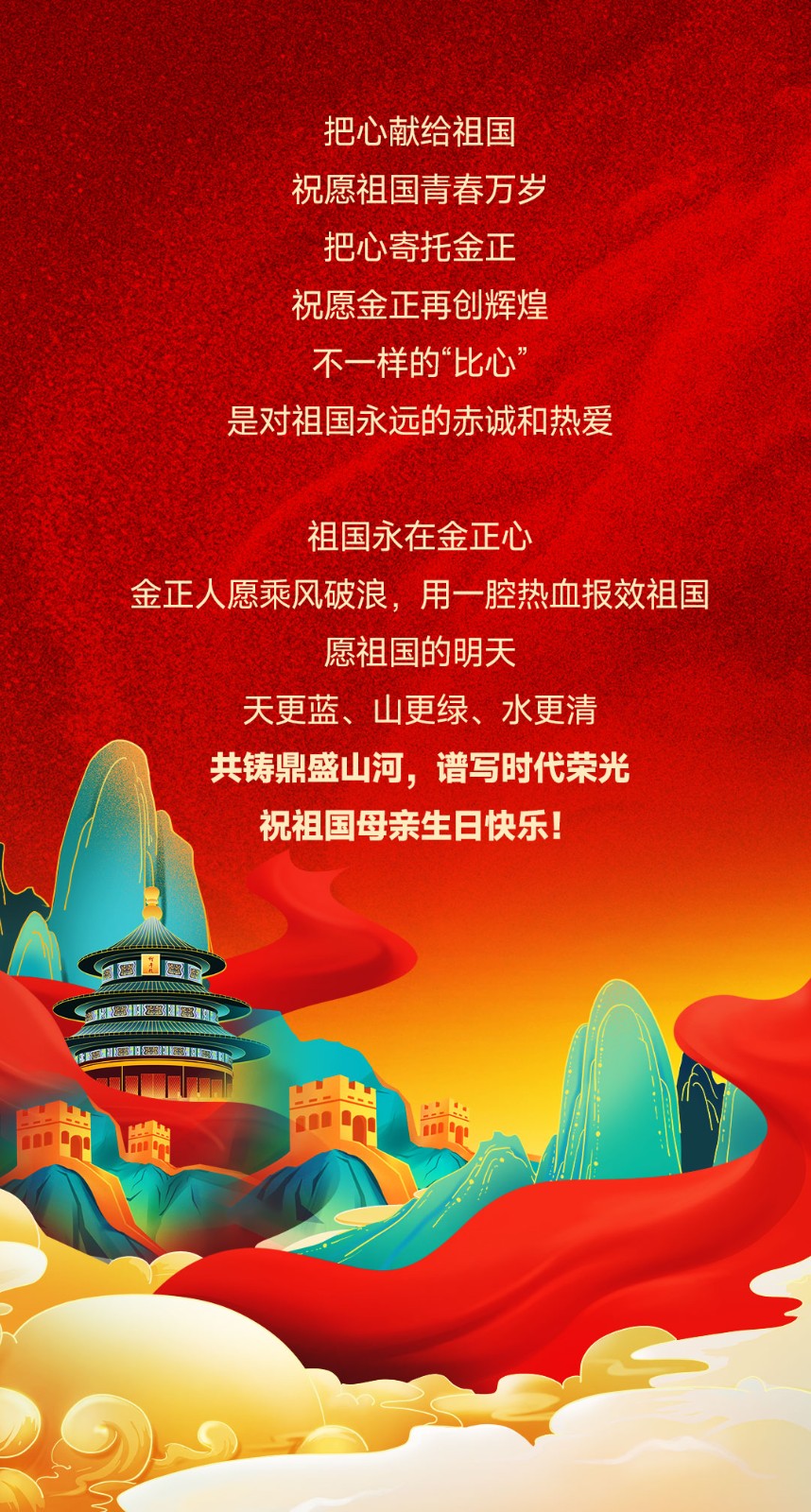 國慶節|今天,煙臺金正環保“花式比心”表白祖國!