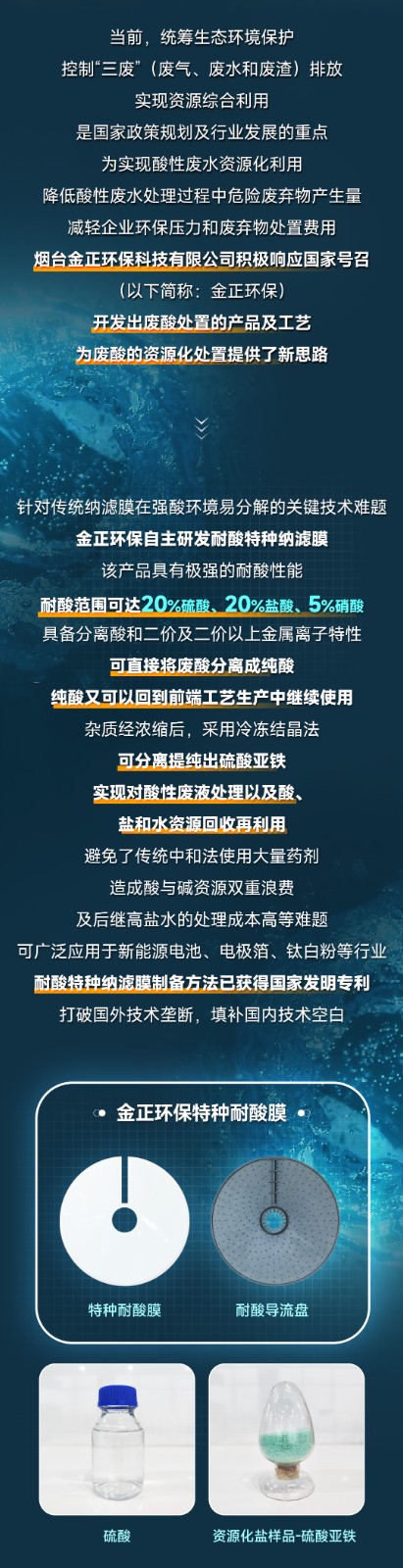 膜技術前沿丨煙臺金正環保耐酸平板膜攻克酸性廢液資源化處理難題,助力循環經濟發展